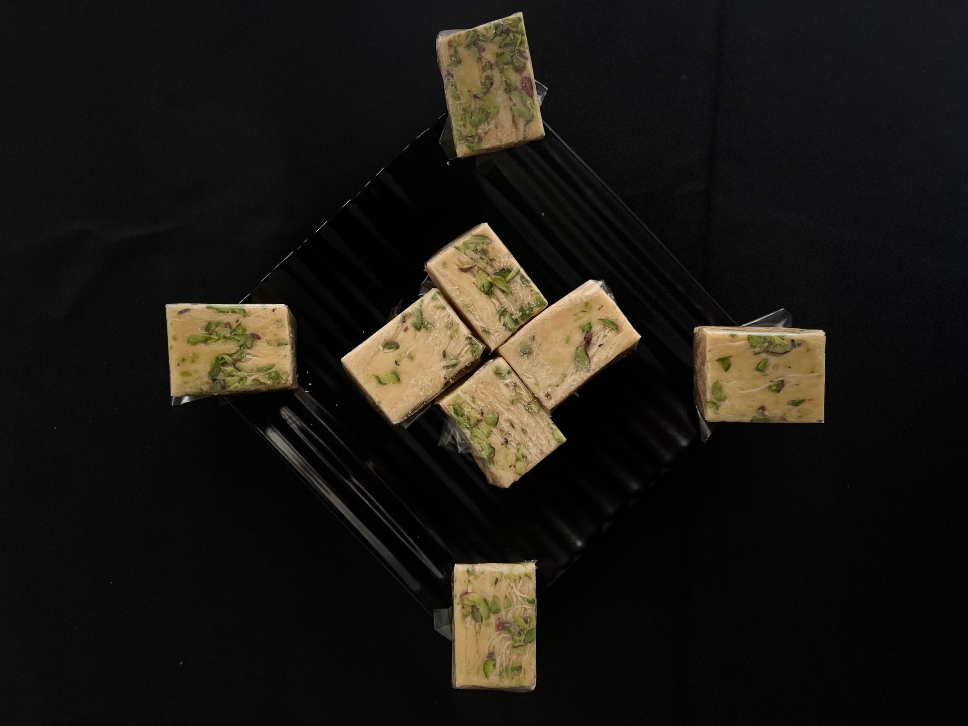 The White Soan Papdi is made of gram flour and all-purpose flour, milk, and sugar with an added tinge of cardamom.
